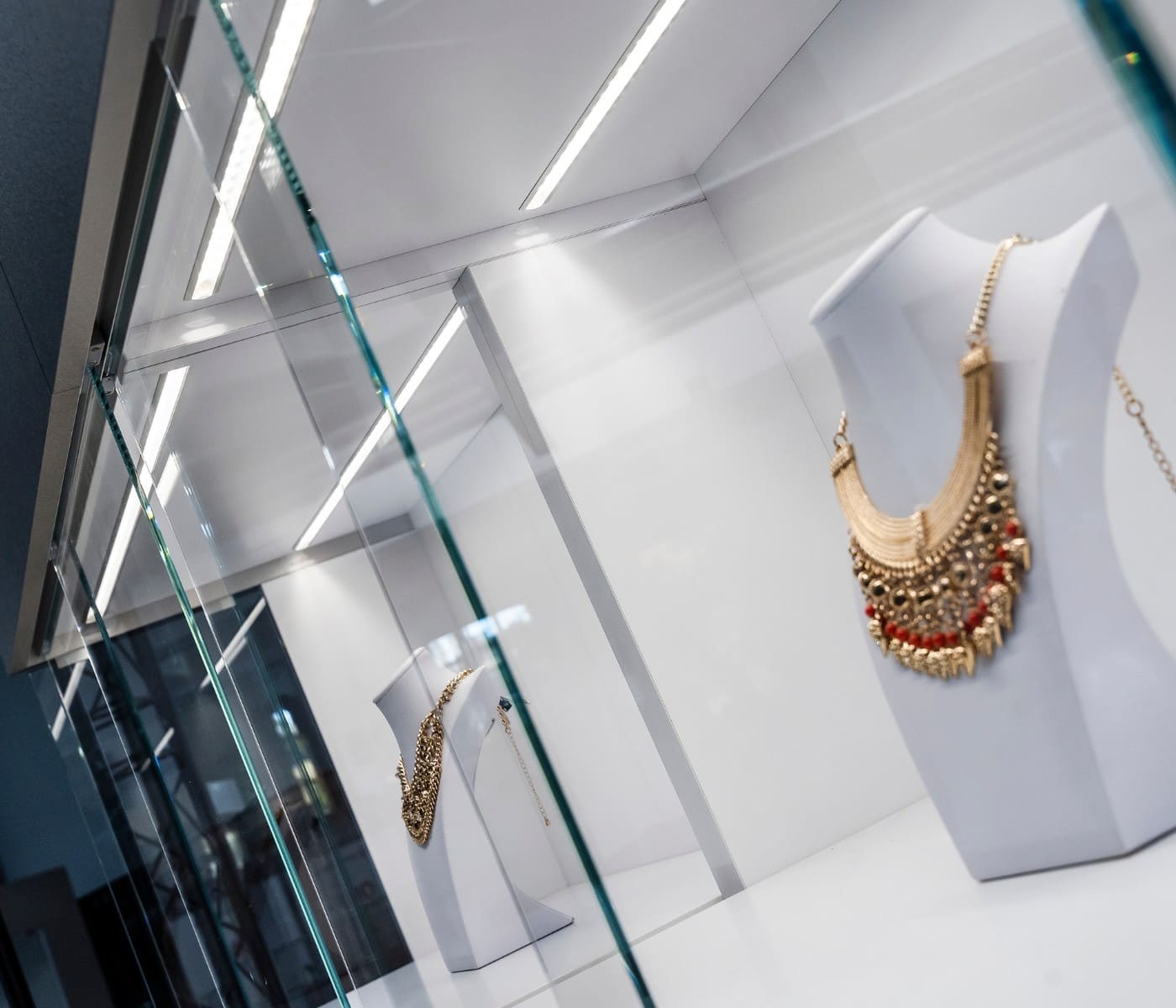 Gablota modułowa idealnie sprawdza się w salonach jubilerskich, butikach z biżuterią i zegarkami, sklepach premium, galeriach handlowych, showroomach, a także podczas ekspozycji targowych i w gabinetach estetycznych, gdzie liczy się estetyka i bezpieczeństwo prezentowanych produktów.