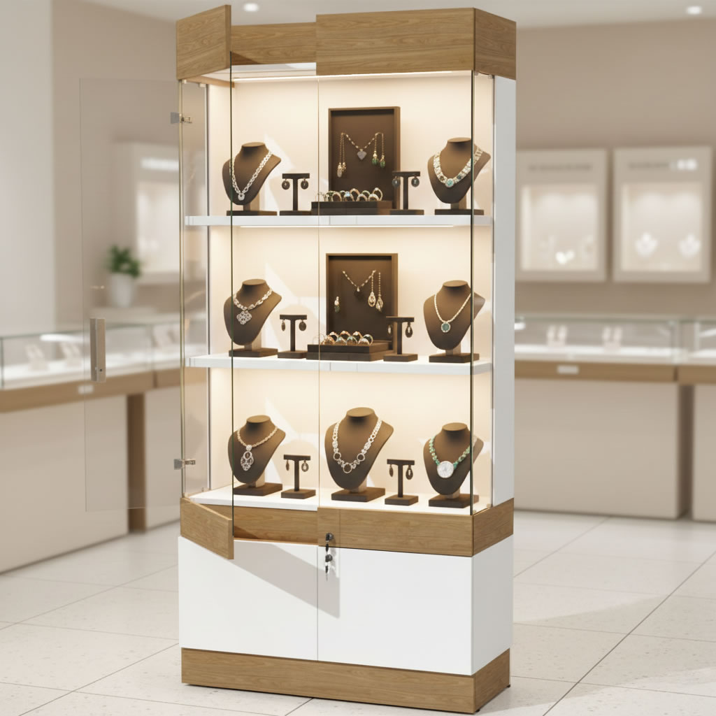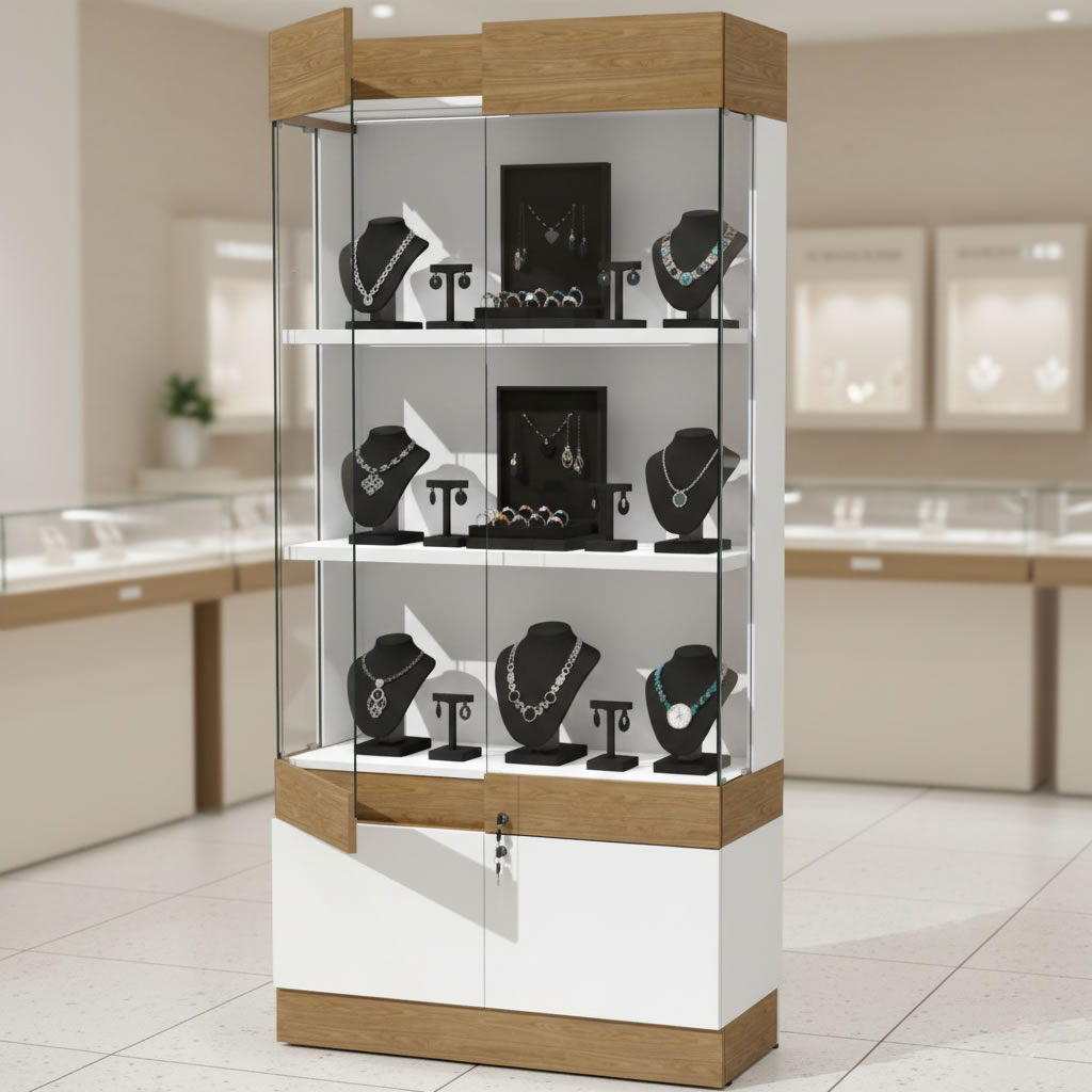 szkłem OPTIWHITE, które zapewnia wyjątkową przejrzystość i wierne odwzorowanie kolorów. Dzięki temu biżuteria prezentuje się naturalnie, a detale produktów są doskonale widoczne bez zniekształceń barw.