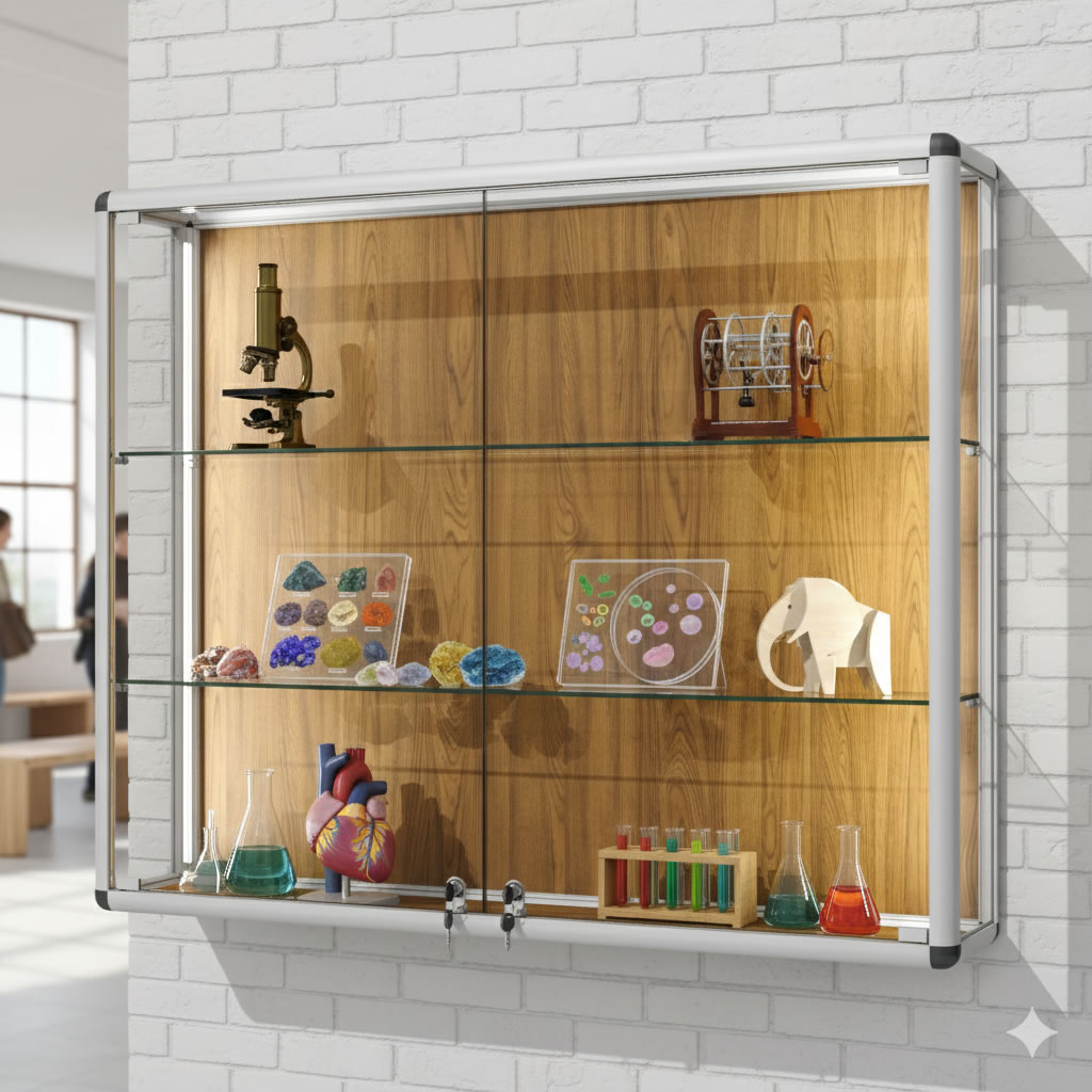 Regulowane półki z możliwością dodania kolejnych – Możliwość elastycznego dopasowania przestrzeni do różnych eksponatów.