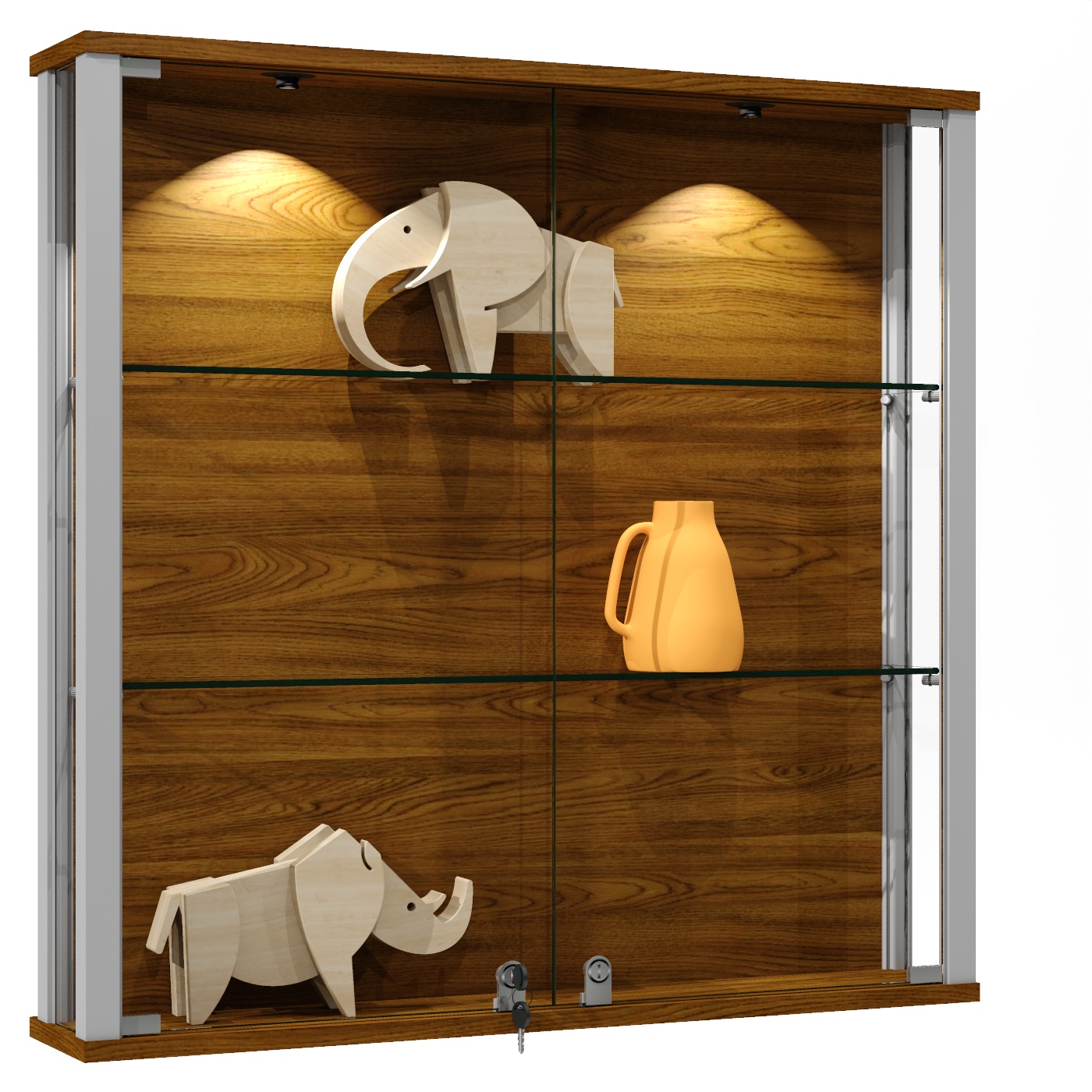 VARIO VA 11-P to kompaktowy, stylowy mebel sklepowy i praktyczna gablota szklana, idealna do zawieszenia na ścianie. Przeszklona z trzech stron (front i boki), pozwala na atrakcyjną ekspozycję pucharów, medali, biżuterii czy kolekcjonerskich modeli. Plecy wykonane z płyty laminowanej sprawiają, że mebel świetnie sprawdza się jako witryna przyścienna. Szkło zamocowane w gumowych uszczelkach zapewnia ochronę przed kurzem, hałasem i drganiami. Regulowane półki pozwalają dopasować wnętrze do różnych rozmiarów eksponatów, a opcjonalne oświetlenie LED (pionowe lub listwowe) efektownie je podkreśla. Produkt dostarczany jest w całości złożony, zabezpieczony skrzynipaletą, co gwarantuje bezpieczny transport.