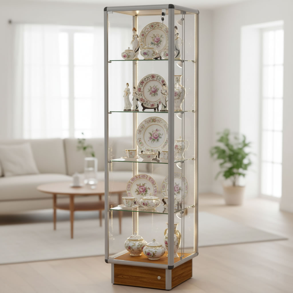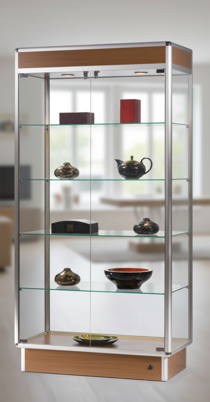Witryna idealna do muzeów, galerii sztuki, salonów sprzedaży, butików i przestrzeni kolekcjonerskich — do prezentacji modeli, biżuterii, artefaktów lub produktów premium.