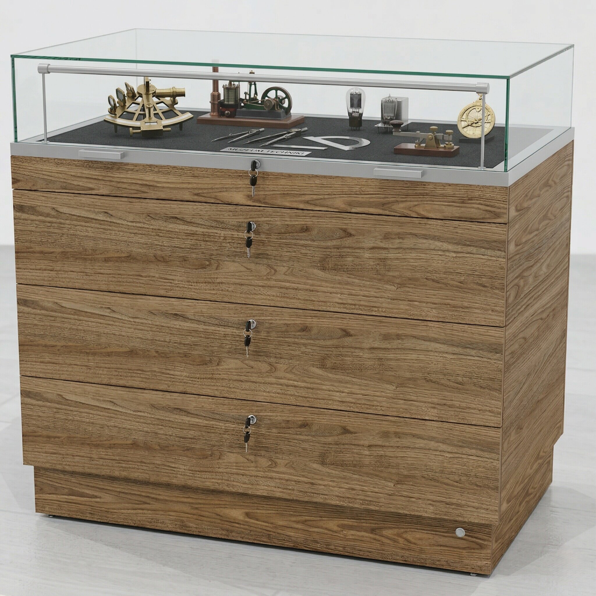 Gablota kopułowa z szafką z szufladami GK-SS-120 to nowoczesny mebel ekspozycyjny stworzony z myślą o efektownej prezentacji produktów oraz wygodnym przechowywaniu. Dzięki większym wymiarom model zapewnia rozbudowaną przestrzeń ekspozycyjną, idealną do zastosowań w handlu, usługach oraz przestrzeniach wystawienniczych.