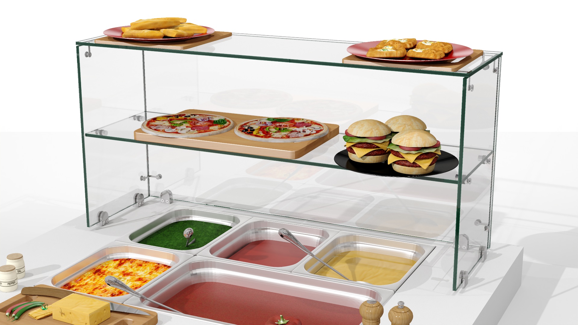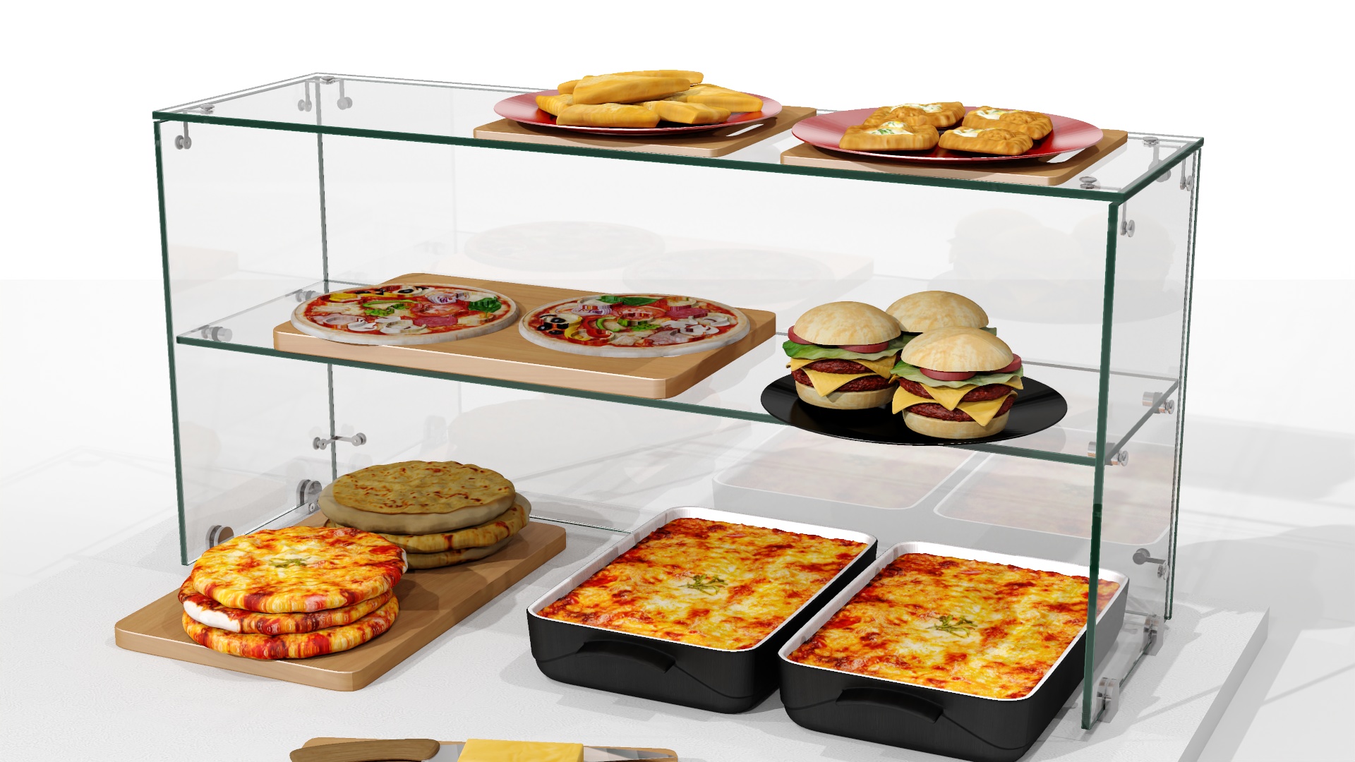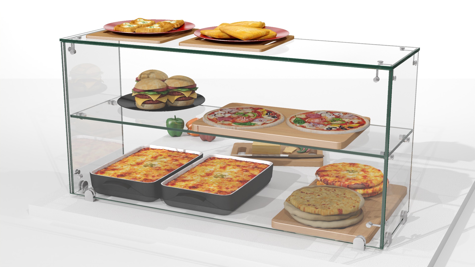 Przeszklona konstrukcja chroni żywność przed kurzem, drobnoustrojami i bezpośrednim dotykiem klientów.