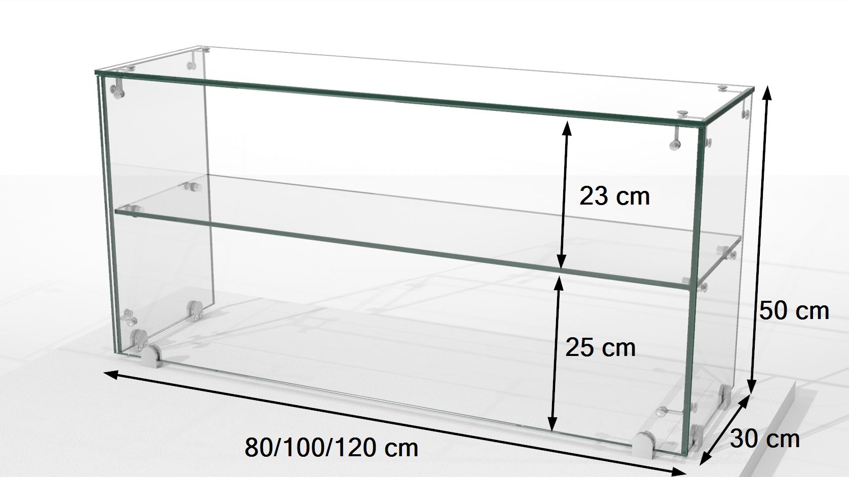Nadstawka szklana NS 2-80 to stylowa i praktyczna gablota, idealna do prezentacji różnorodnych produktów spożywczych. Dzięki solidnej konstrukcji ze szkła hartowanego oraz przemyślanemu designowi, zapewnia nie tylko estetyczną ekspozycję, ale również higieniczną ochronę i bezpieczeństwo. Model wyposażony jest w dodatkową półkę, która pozwala efektywnie wykorzystać przestrzeń, prezentując produkty na dwóch poziomach.