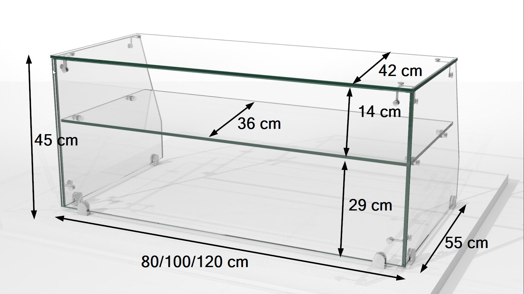 Nadstawka szklana NS 3-80 to elegancka i praktyczna witryna cukiernicza, zaprojektowana z myślą o estetycznej prezentacji i higienicznej ochronie żywności. Dzięki skośnemu bokowi od strony klienta oraz półce od strony sprzedawcy, model ten zapewnia wygodny dostęp do produktów oraz maksymalne wykorzystanie przestrzeni ekspozycyjnej. Konstrukcja wykonana ze szkła hartowanego i solidnych złączek sprawia, że gablota idealnie sprawdza się w codziennej pracy punktów gastronomicznych i handlowych.