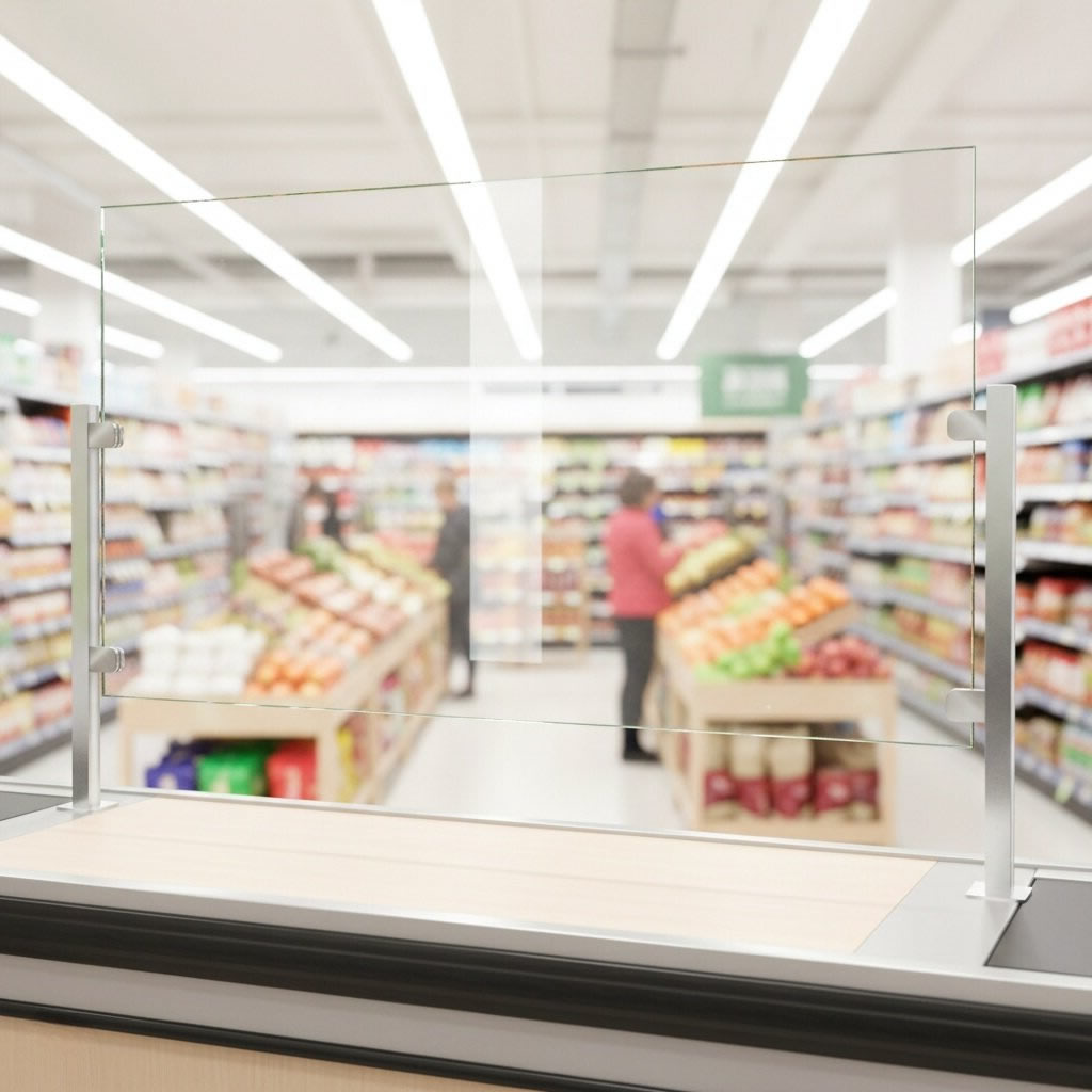 Zastosowanie: osłona antywirusowa, osłona na biurko, osłona na ladę, osłona na stanowiska kasowe m.in. w sklepach spożywczych, sklepach jubilerskich, gabinetach medycznych, aptekach, stacjach paliw, drogeriach, piekarniach, bankach.