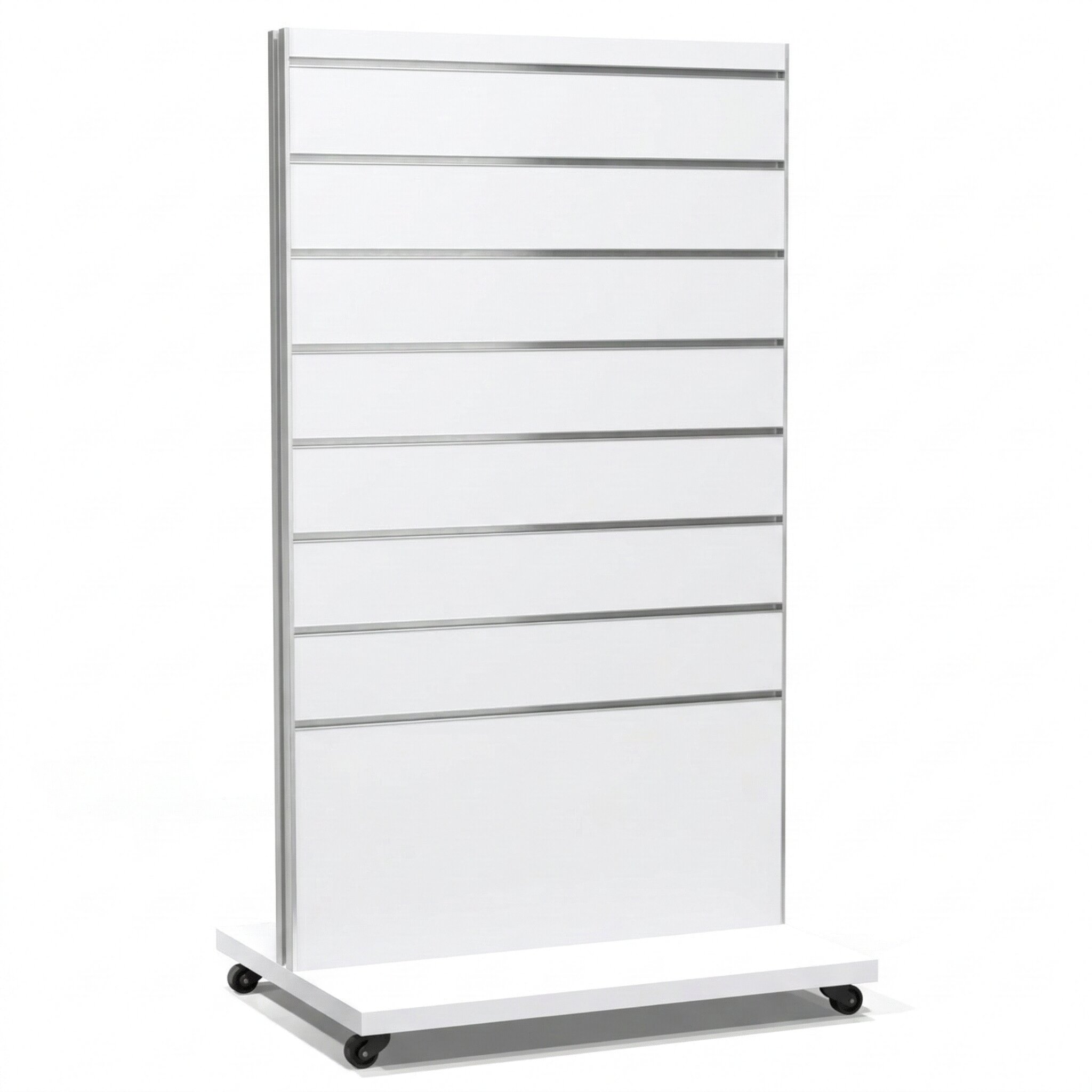 Panel sklepowy Spacewall (Slatwall) to system ekspozycyjny stosowany w sklepach do prezentacji produktów na ścianie. Panele posiadają poziome frezy z aluminiowymi wkładami, w które można wstawiać różne akcesoria, takie jak wieszaki, półki czy haczyki do ekspozycji towaru.
