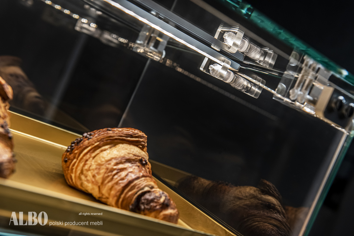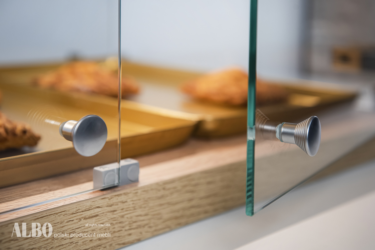 Dodatkowym atutem jest możliwość wyboru spośród szerokiej gamy dekorów płyt meblowych, co pozwala na dopasowanie witryny do wystroju wnętrza lokalu. Na życzenie klienta istnieje również opcja zamontowania profesjonalnego oświetlenia marki HASTER.pl, które podkreśli walory wizualne eksponowanych produktów.