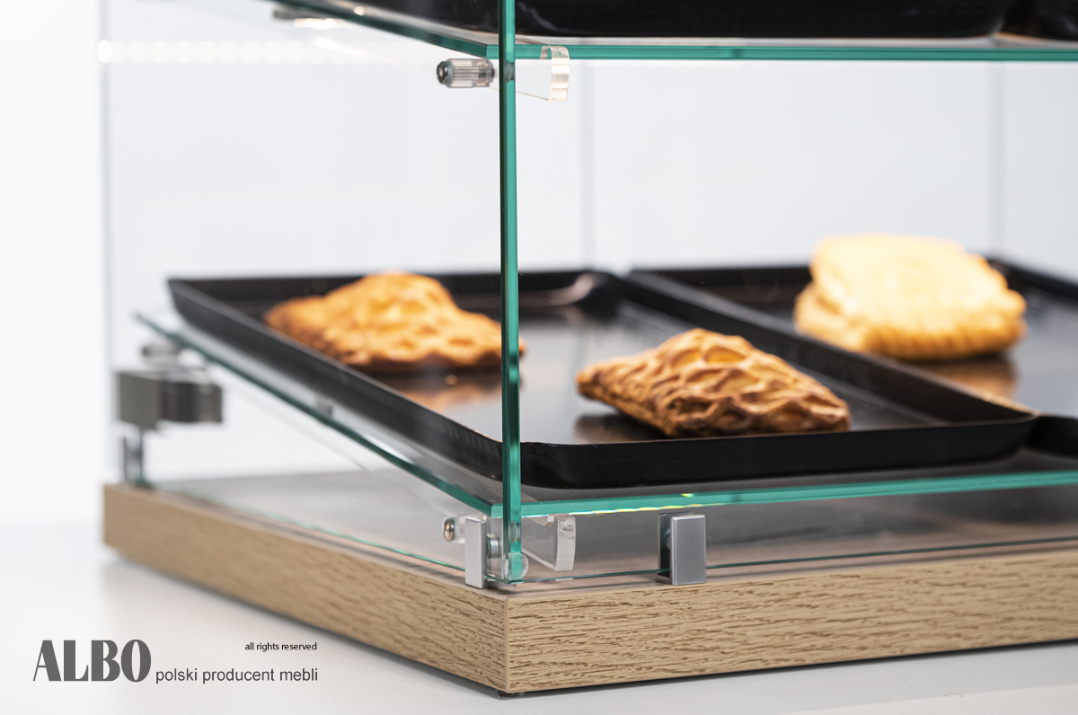 Zastosowanie: idealna do ekspozycji ciastek, ciast, kanapek i przekąsek w cukierniach, piekarniach, bufetach, kawiarniach, sklepach spożywczych, barach, restauracjach, firmach cateringowych oraz na stacjach benzynowych