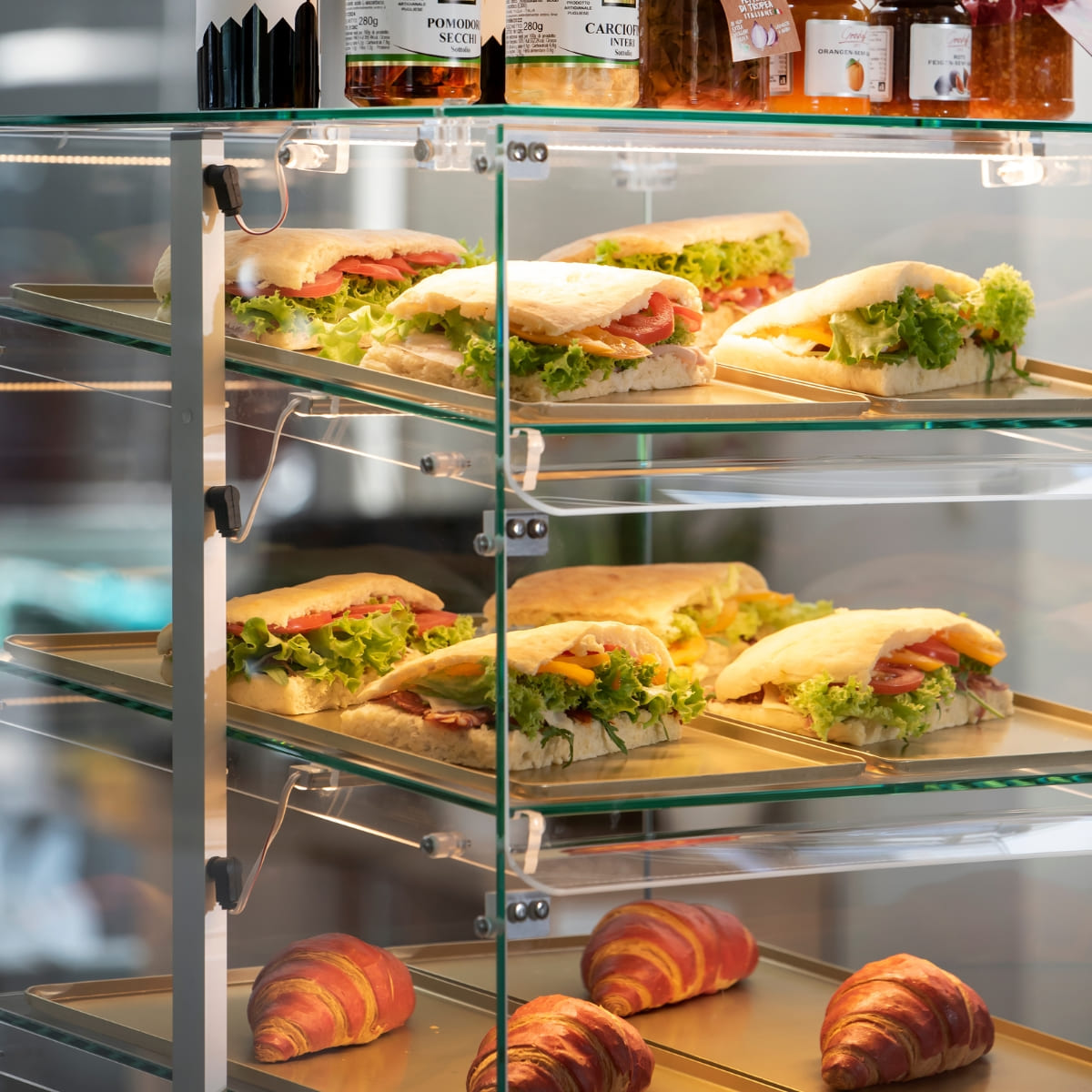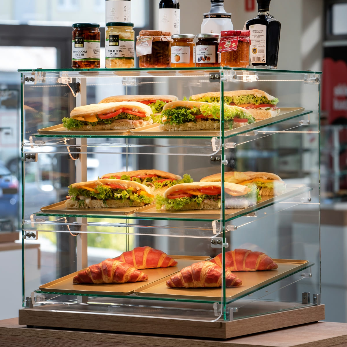 Kolekcja witryn piekarniczych SNACK - to system funkcjonalnych i nowoczesnych witryn wykonanych w całości ze szkła. Minimalistyczna forma i przeszklone ściany nadają witrynom lekkości oraz skupiają wzrok na produktach na nich eksponowanych, które są doskonale widoczne z każdej strony. Witryny piekarnicze zaprojektowaliśmy z myślą o nowoczesnej branży spożywczej, gdzie obok smaku produktu, liczy się jego oprawa i bezpieczeństwo.
