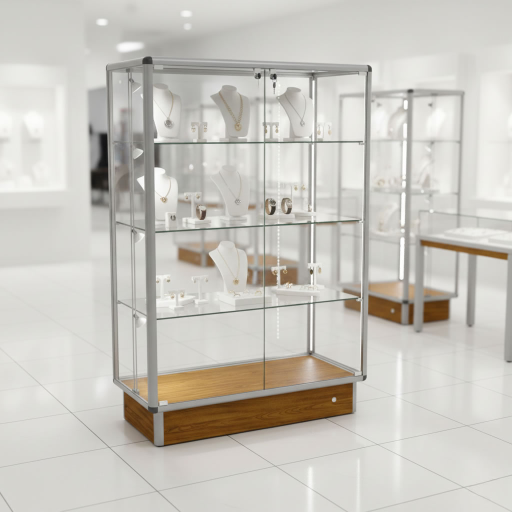 Witryna idealnie sprawdza się w sklepach, butikach, galeriach oraz salonach sprzedaży jako ekspozycja biżuterii, akcesoriów, figurek i produktów premium.