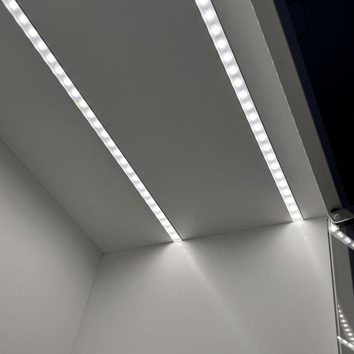 - Oświetlenie pod półkowe, dwie linie oświetlenia na półkę