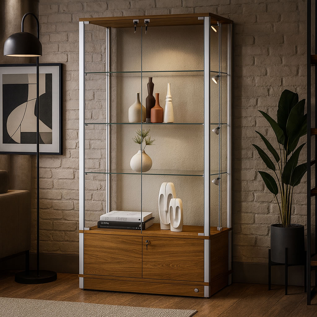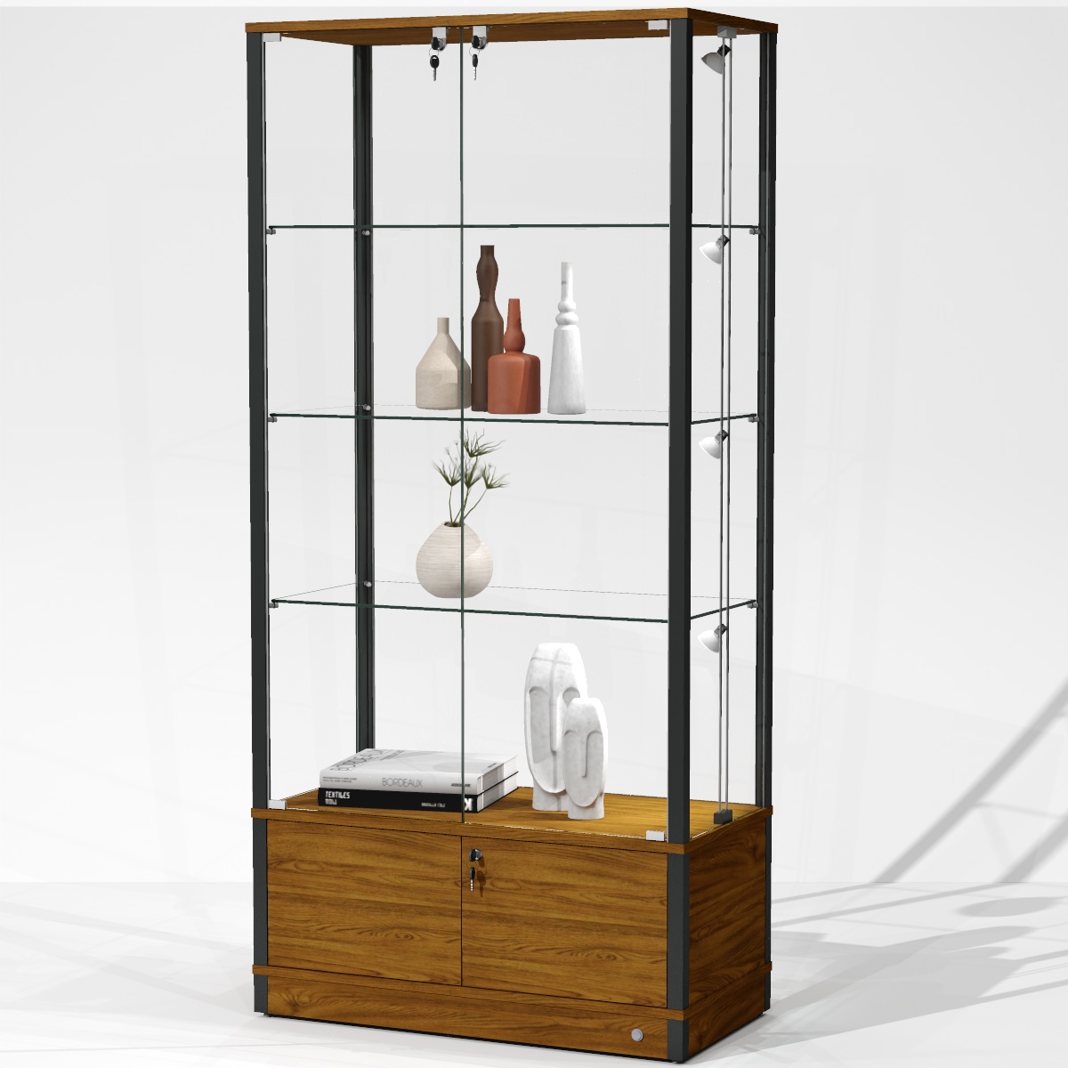 VARIO VA 1-D to efektowny mebel ekspozycyjny – szklany z każdej strony, stworzoną jako stylowa gablota szklana idealna do eksponowania kolekcji, trofeów czy dekoracji. Szklane ścianki bezpiecznie zamocowane są dzięki gumowym uszczelkom, które chronią przed kurzem, hałasem i wibracjami. Regulowane półki oraz opcjonalne oświetlenie LED – boczne, podpółkowe lub pionowe – pozwalają na indywidualne dostosowanie ekspozycji. Mebel dostarczany jest w stanie złożonym, zabezpieczony skrzynipaletą, co zapewnia bezpieczną dostawę bez ryzyka uszkodzeń.